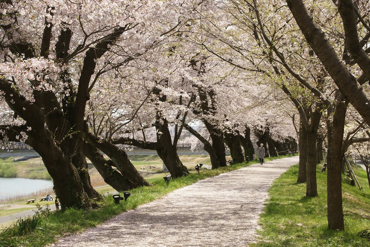 福井市内の一番の桜スポットではないかと思う「足羽川の土手」。