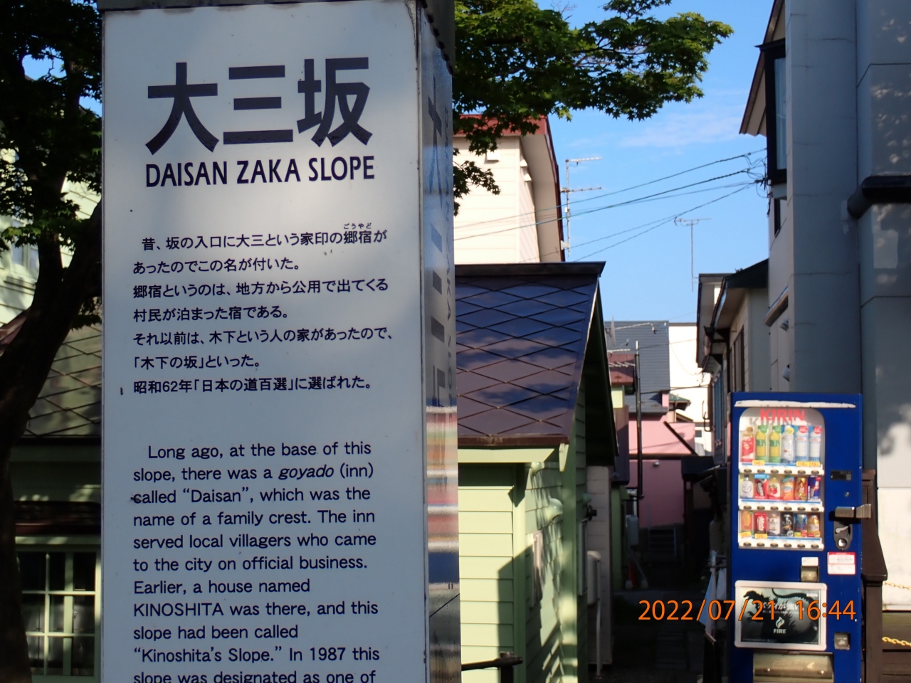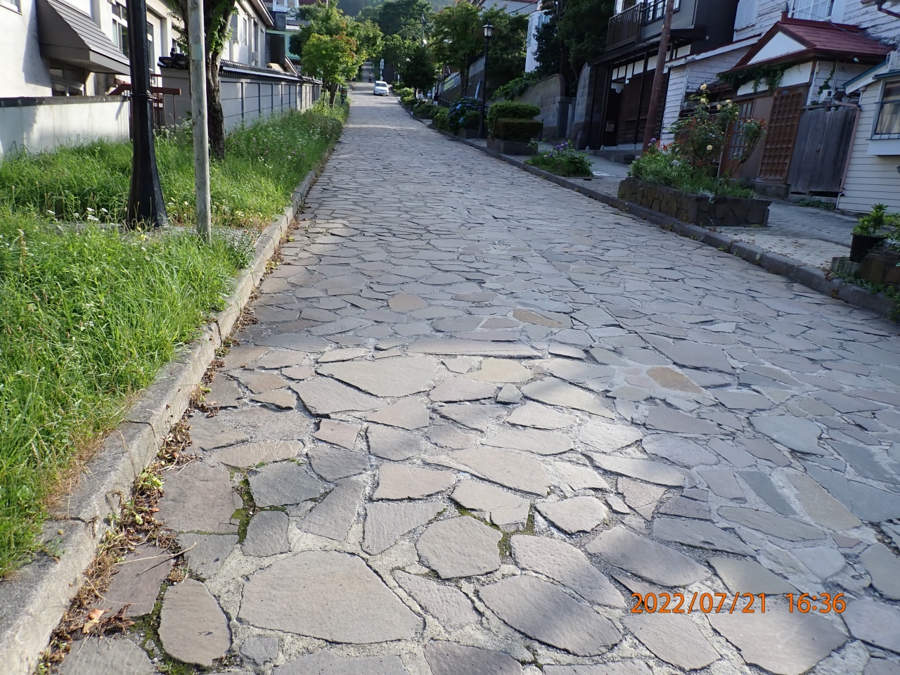函館市観光で立ち寄りました。大三坂は、日本の道100選の一つになっているだけあって、函館のたくさんの坂の中でも印象的な坂の一つでした。鉄平石の石畳と沿道の洋館が建ち並ぶ街並みが調和するエキゾチックな雰囲気が特徴と説明されていたように、雰囲気のある坂道でした。