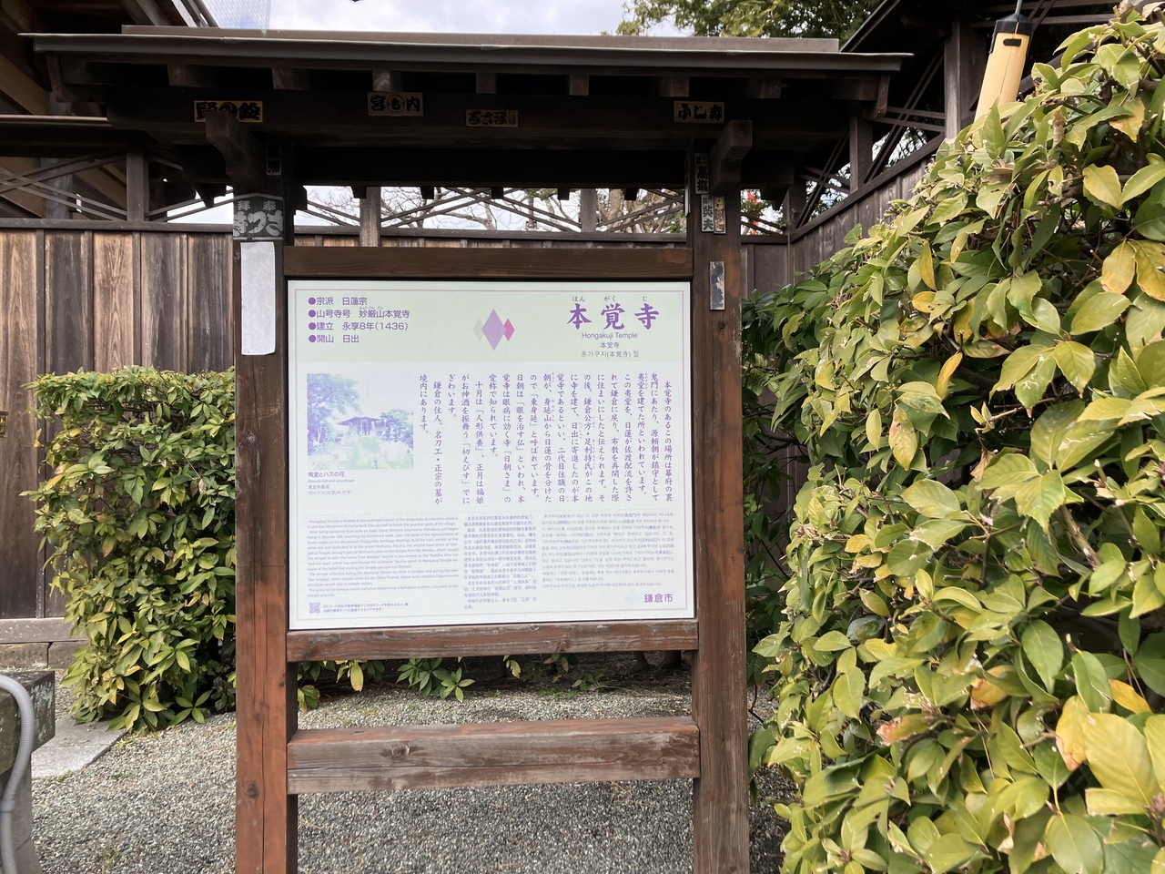 鎌倉駅東口から徒歩で5分ほどです。1436年創建、足利持氏が鎌倉夷堂があった場所に寺を建て、一乗日出に寄進した日蓮宗の寺院です。本山の身延山から日蓮の遺骨を分けたので「東身延」とも言われています。本覚寺には今「にぎり福」という、一つと同じものはない可愛い「お守り」がありますヨ!