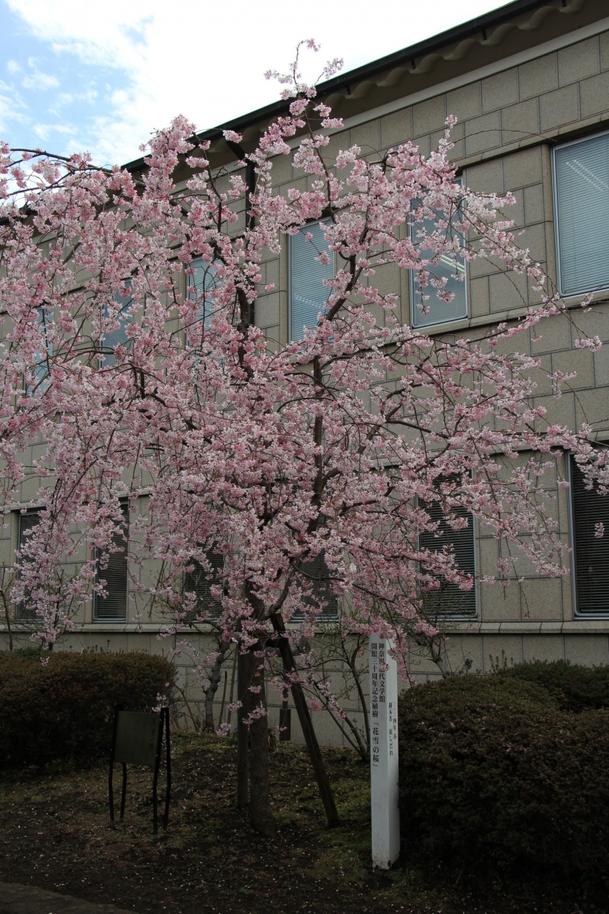 県立神奈川近代文学館は港の見える丘公園内にあります。その敷地内には「芸亭の桜」と名付けられた染井吉野と「花雪の桜」と名付けられた紅しだれが植えられています。