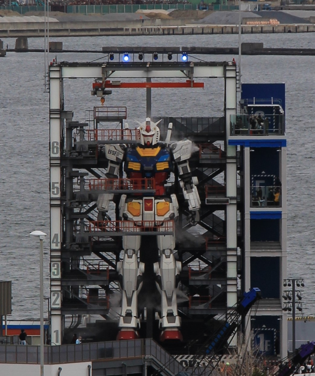 港の見える丘公園から山下埠頭にあるGUNDAM FACTORY YOKOHAMAの動くガンダムを眺めました。港の見える丘公園から遮るものがないのでガンダムをはっきりと見ることが出来ました。但し、かなり距離があるので望遠鏡や望遠レンズが必要だと思います。