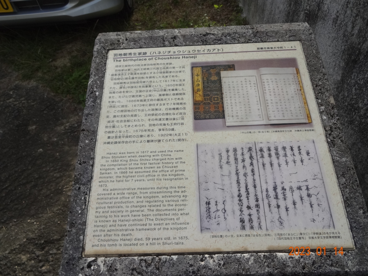 琉球王国時代の政治家、羽地朝秀の生家があった場所だそうです。
