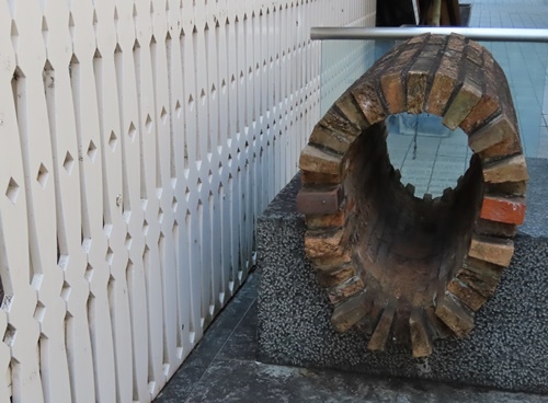 場所はちょうど15番館の東側あたりです。神戸の外国人居留地に埋設されていた、レンガ造りの下水管が展示されています。円形管と卵形管があり、南北に沿って6本1880mが1872年(明治5年)に完成しました。その一部は今でも雨水管として使われているそうです。