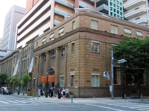 大丸神戸店のあるブロックの南東側、仲町通りに面した建物です。ウィリアム・メレル・ヴォーリズの設計で1929年(昭和4年)にシティバンク神戸支店として開業しています。南面の四本のイオニア式列柱はいかにも堅固な銀行建築といった趣ですが、黄味がかった外壁の石積みは国内銀行のニュアンスとはだいぶ違うように思いました。現在は百貨店大丸の所有で店舗などに利用されています。