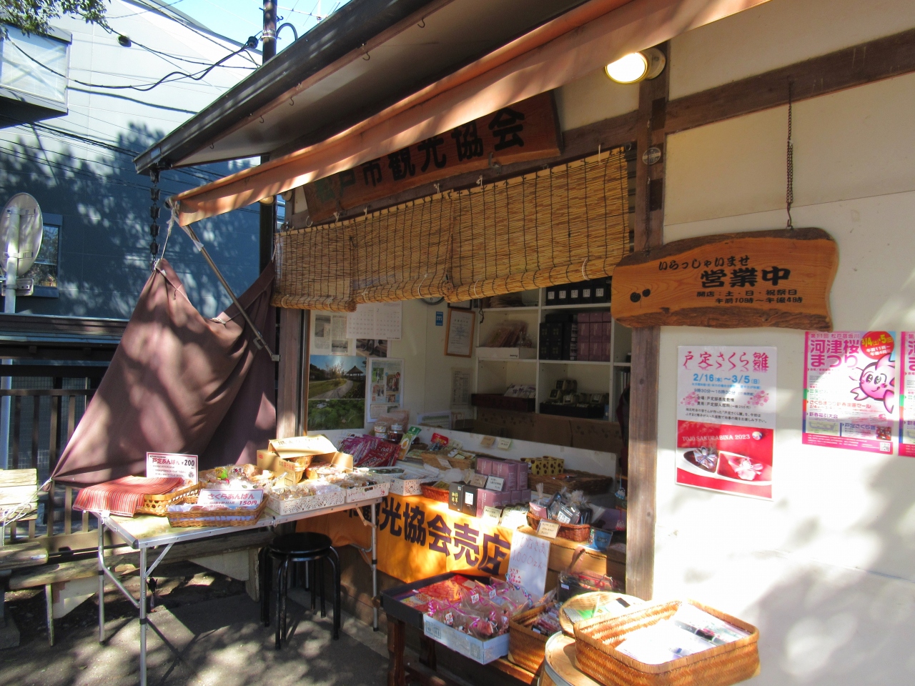 戸定が丘歴史公園入口の駐車場に設置されている、土日祝日のみオープンしている小さな売店です。店頭ではほうれん草や菊いもなどの野菜や、あんぱんやコーヒー、手作り雛人形、ちょっとした土産物が売られていました。店の前にテーブルや椅子も用意されていましたが、購入意欲をそそられるものはなくすぐに失礼してしまいました。