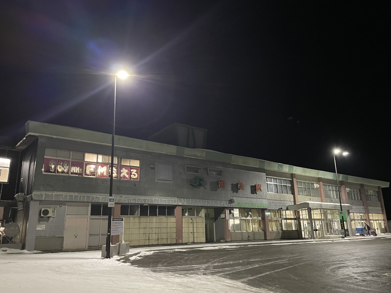 留萌駅舎内に入る地元コミュニティFM局です。夜の列車で留萌駅に降り立ちましたが、駅舎のFMもえるの部屋だけ照明がついていました。留萌駅も2023年の春には営業を終えますが、その後はどのようになるのでしょうか。
