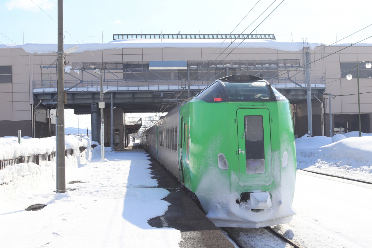 札幌と旭川を結ぶ幹線である函館本線の特急です。ほぼ1時間毎の運転になっています。深川から美唄を利用しました。幹線とはいえ、岩見沢より先は普通列車の便も限られており、短距離でも特急を利用せざるをえません。