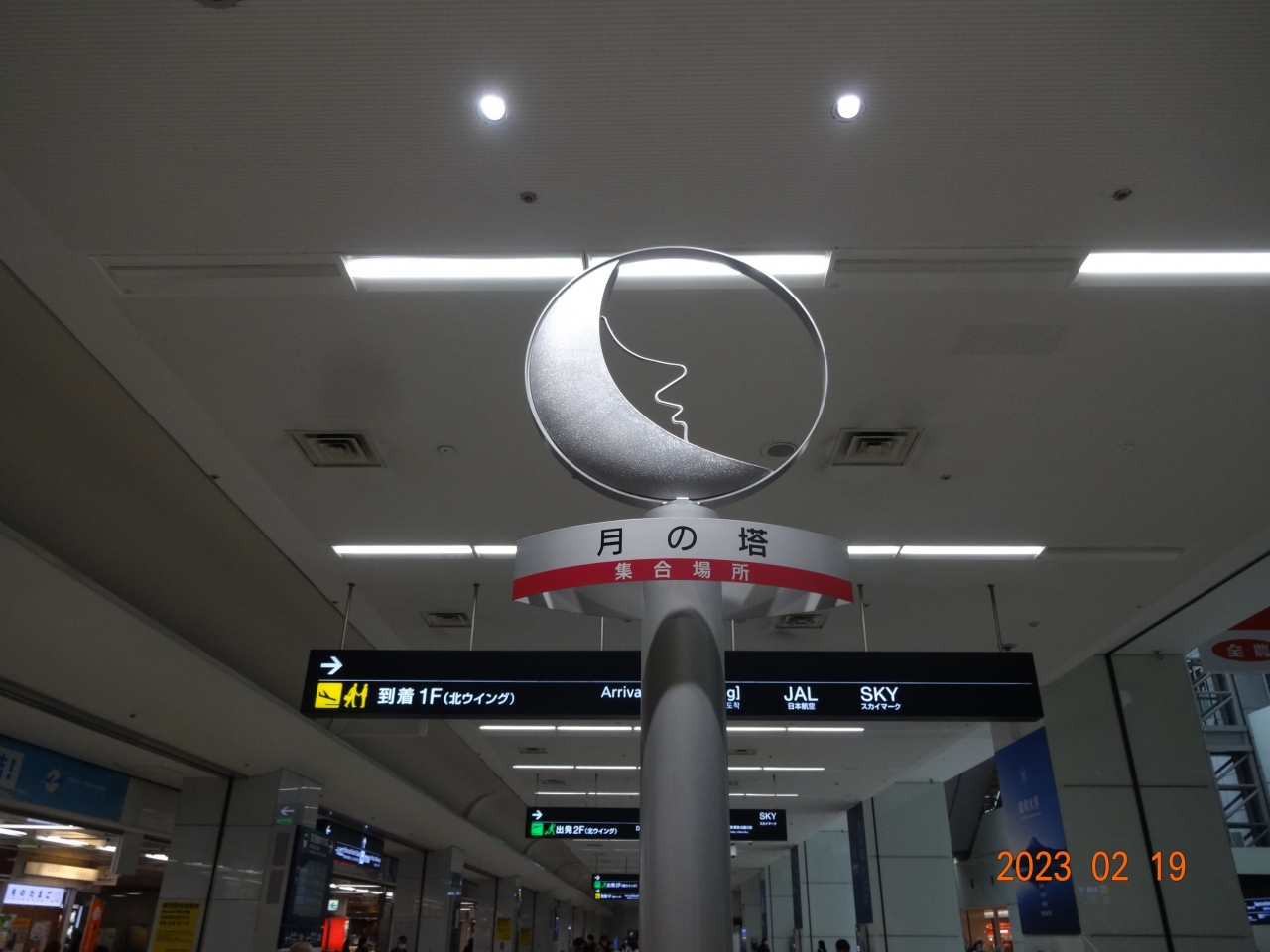 月の塔の周囲にも人がいっぱいいたので、カメラを天井に向けて、「月の塔」だけを撮りました。空港内はちょっと落ち着かない雰囲気でした。