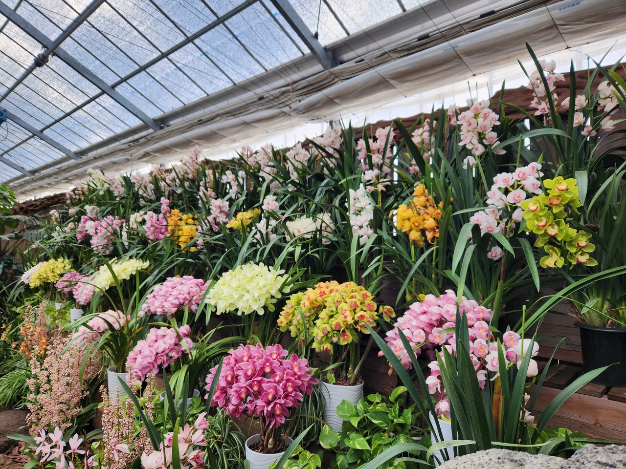温室はハーブはもちろん、色々な種類のランが咲きほこっています。