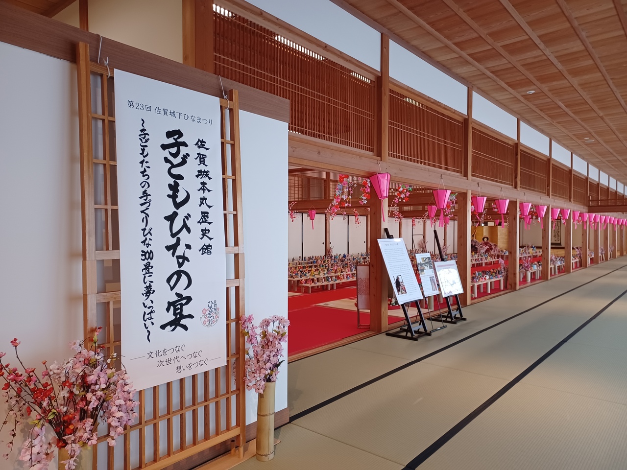 佐賀県立佐賀城本丸歴史館を見学しましたが、ひな祭りで佐賀市内のこども達が制作したお雛様、約1400体が300畳に展示されており、圧巻でした。