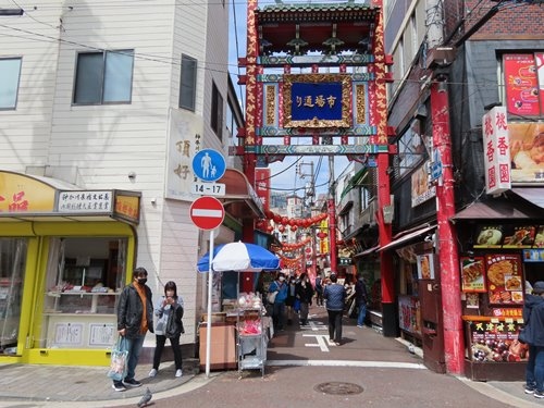 このときは天長門を通って西へ進み、香港路を目指していたので南側の門の前を通りました。市場通りの南北に門があります。中華街のほぼ真ん中あたりにあるにぎやかな通りで、関帝廟通りと中華街大通りを結んでいます。