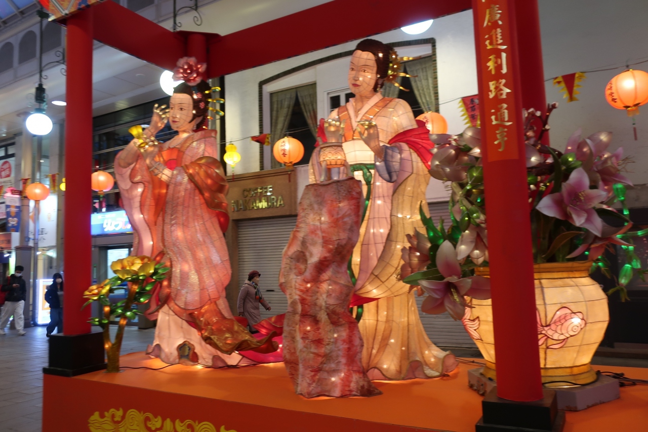 長崎ランタンフェスティバルの期間中に何か所かに分かれているフェスティバル会場を渡り歩く途中でこのアーケード街も立ち寄りました。添乗に吊るされたランタンや通路の真ん中に置かれた大きなオブジェなどが大変派手で、まるで中国のお祭りのようでした。