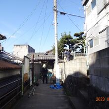 狭い通りに面した門の前には複数の工事関係の方がいらっしゃいました。