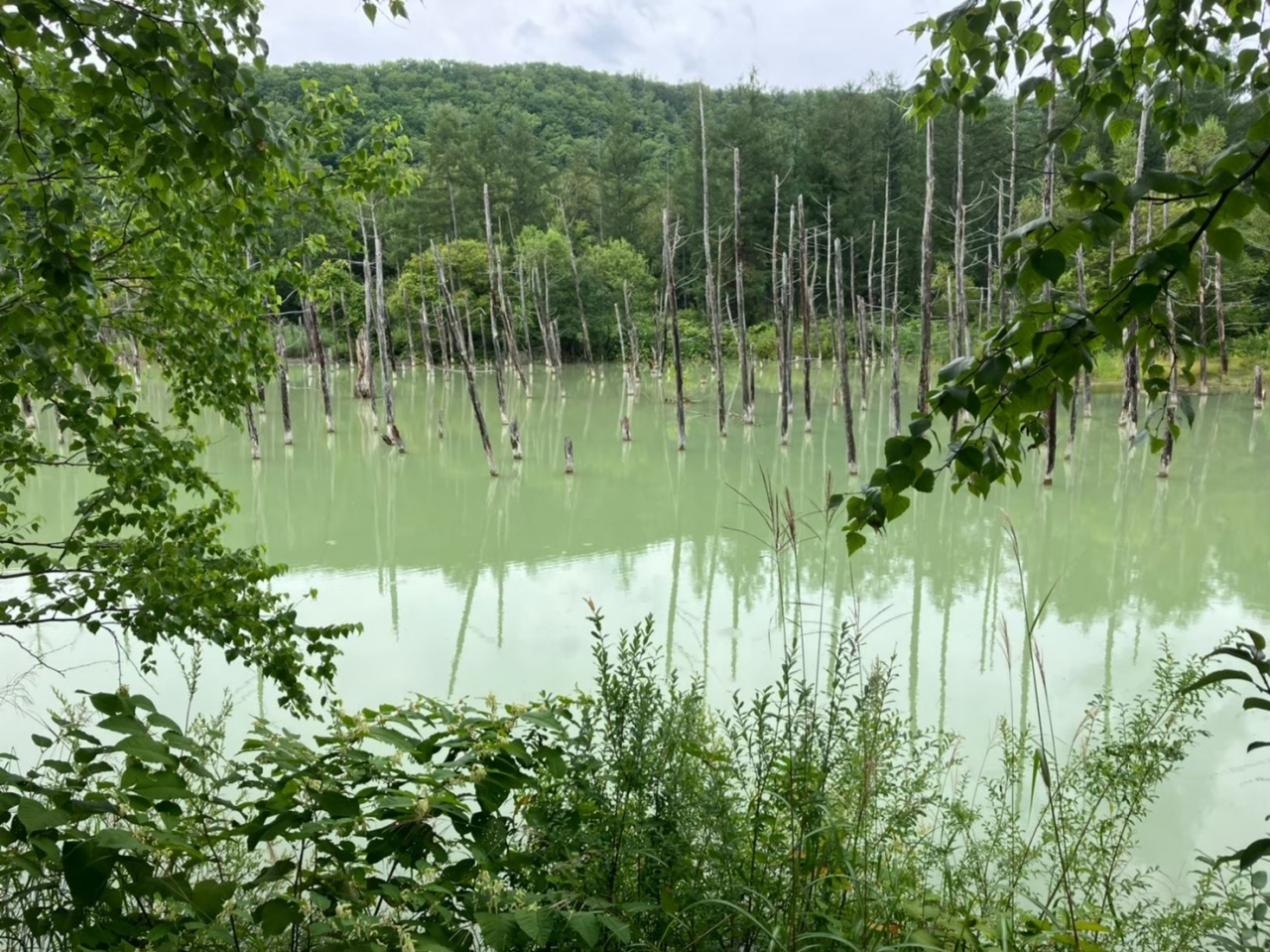 前日に強めの雨が降ったようで、青ではなく緑の池で残念でした。