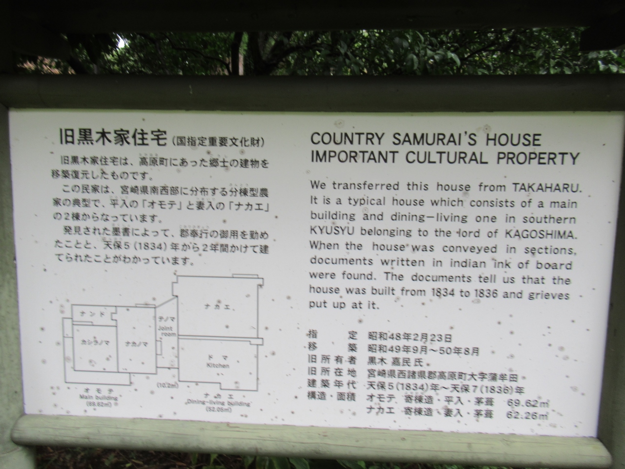 旧黒木家住宅は、高原町にあった郷士(ごうし)の建物を移築復元したもので、国の重要文化財となっています。
