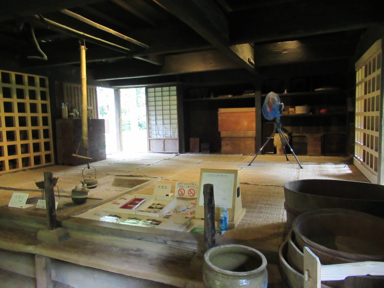 この民家は、宮崎県南西部に分布する分棟型農家の典型で、平入の「オモテ」と妻入の「ナカエ」の2棟からなっています。