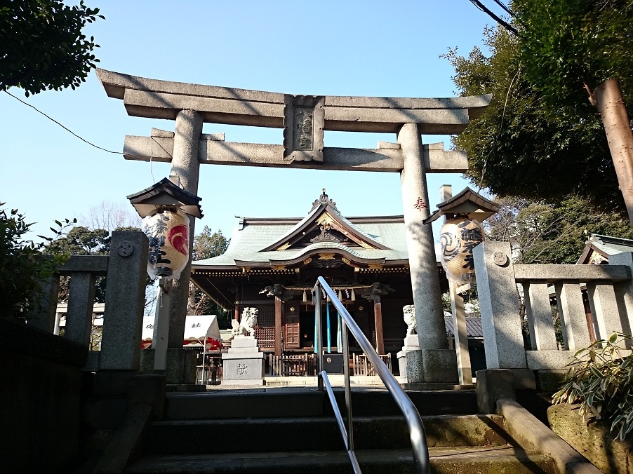 JR赤羽駅から徒歩10分程度、北区赤羽台4丁目の星美学園小学校近くに鎮座している神社です。延暦年間(782年~806年)に創建されたと伝えられているそうです。境内から縄文式土器や弥生式土器が発見され八幡神社遺跡と呼ばれています。現在の社殿は昭和6年(1931年)に再建されたものです。急で長い坂道を上った所にあり、現代ではさほど感じませんが、かつては見晴らしの良い場所だったのでしょう。