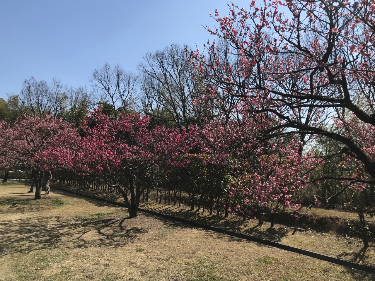 神崎町の遊楽山と呼ばれる丘が神崎緑地公園になっていて、公園の一角が神崎梅園になっていました。駐車場もありました。平日の昼時でしたが、見学に来られている方が多かったです。約500本の梅が植林されているそうです。緑地公園に展望台のような丘があって、上がると周囲の景色を楽しめるいい場所でした。
