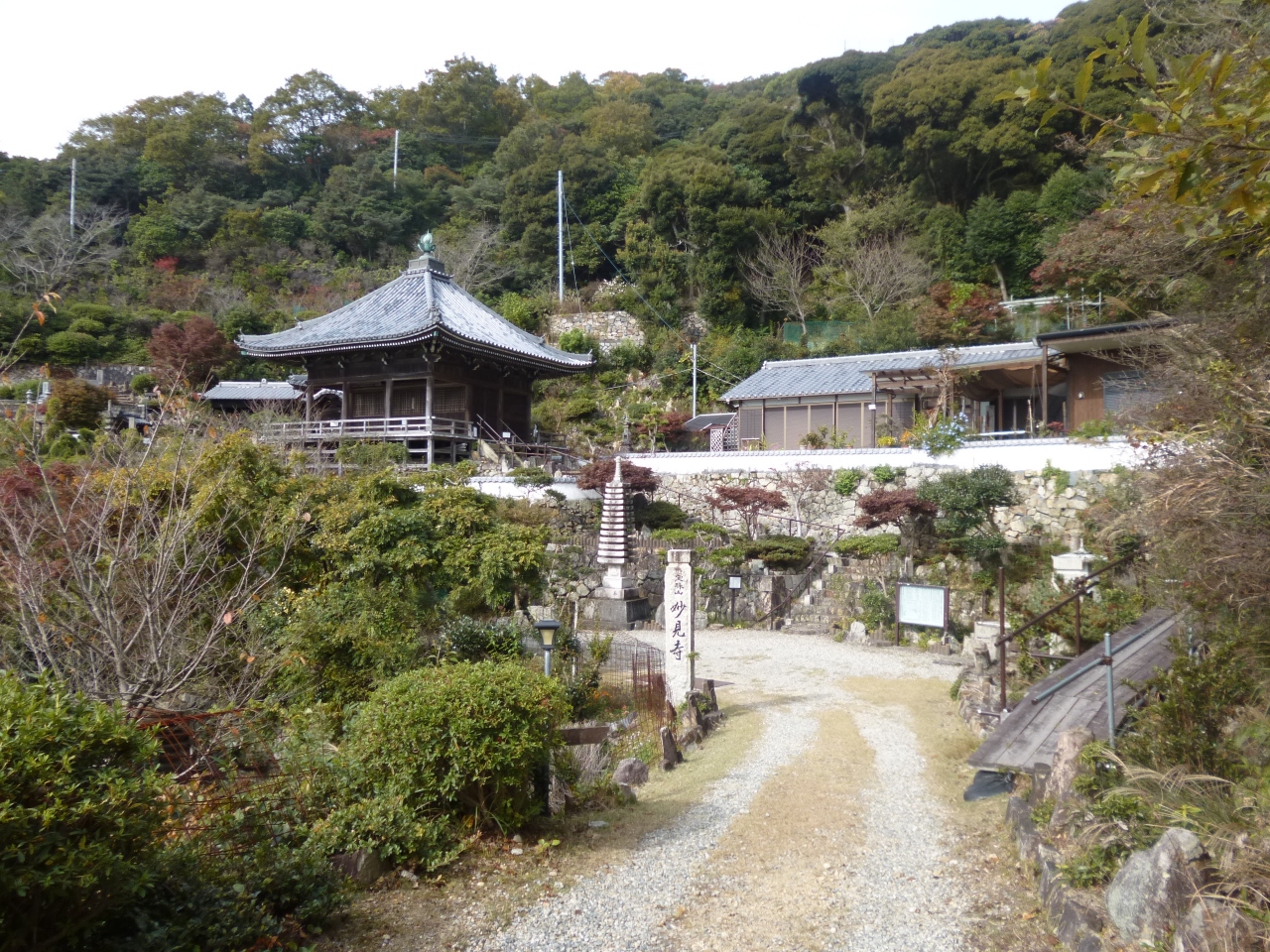 坂越浦に面したと駐車場から坂を徒歩で15分ほど上がると妙見寺があります。749年に行基が開きその後空海が中興したといわれる歴史ある真言宗のお寺です。現在の観音堂は1772年に再建されたもので、長い柱や貫で床下を固定してその上に建物を建てる懸造りの建物です。なんといっても坂越浦や生島の眺望がすばらしいです。