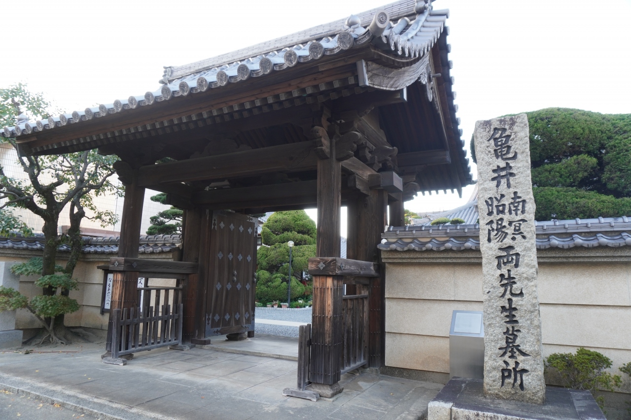門前に「亀井南冥・昭陽両先生墓所」と大書した石柱が建っていて、一族の墓があることをアピールしています。