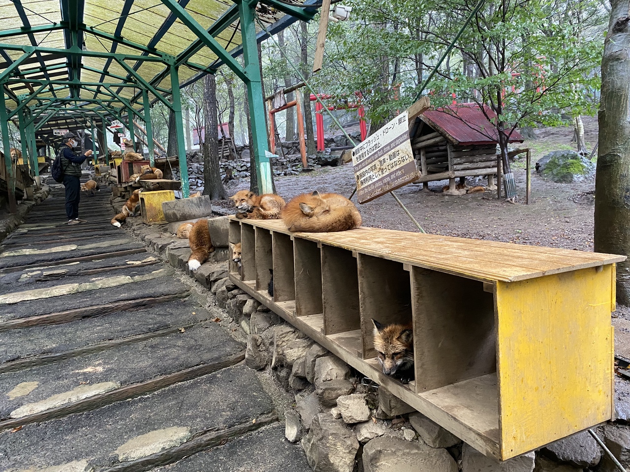 見学した日が雨で寒かったのですが、見学コースは屋根があって、雨なのでキツネ達も屋根の下にいてるので間近でゆっくり見る事ができました。