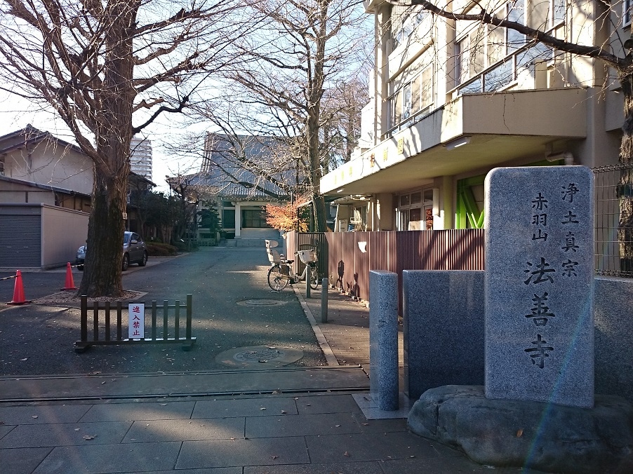 JR赤羽駅から徒歩10分程度、北区赤羽台3丁目に建つ浄土真宗系単立の寺院。年代は不明ですが浅草清島町に創建され、大正12年(1923年)現在の場所に移転したそうです。あまり特徴のない寺院に思えましたが、本堂脇にペット用の霊園・東京動物霊園がありました。