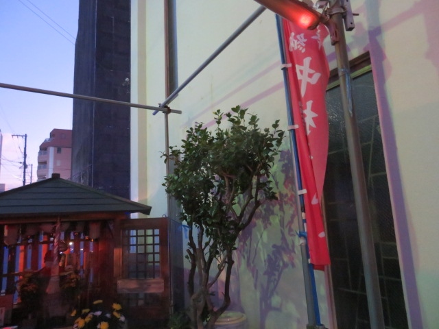 堀川に架かる橋のたもとにある地蔵尊です。和歌山大空襲で犠牲になった方々を祀る悲しい地蔵尊です。夜に行くと、堀川に架かる青い鉄橋のような橋がライトアップされていて、その光を受けて、こちらの地蔵尊もぼんやりライトアップされて、幻想的な雰囲気でした。