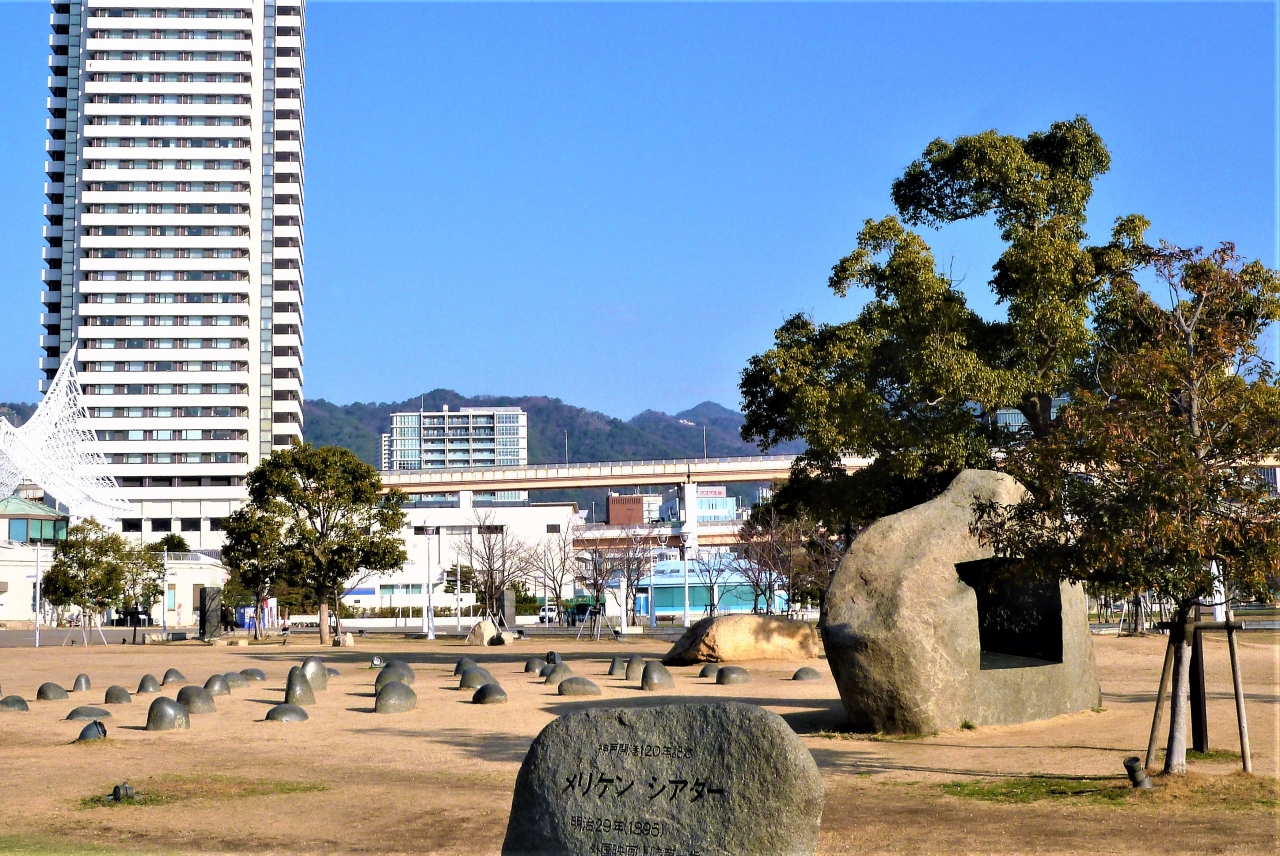 神戸港のメリケンパークを散策している時、<メリケンシアターの記念碑>を見つけました;1896年 神戸で`日本初の活動写真`が上映されましたので、それを記念して碑が(1987年);`映画がここ神戸`は初めて知りました!