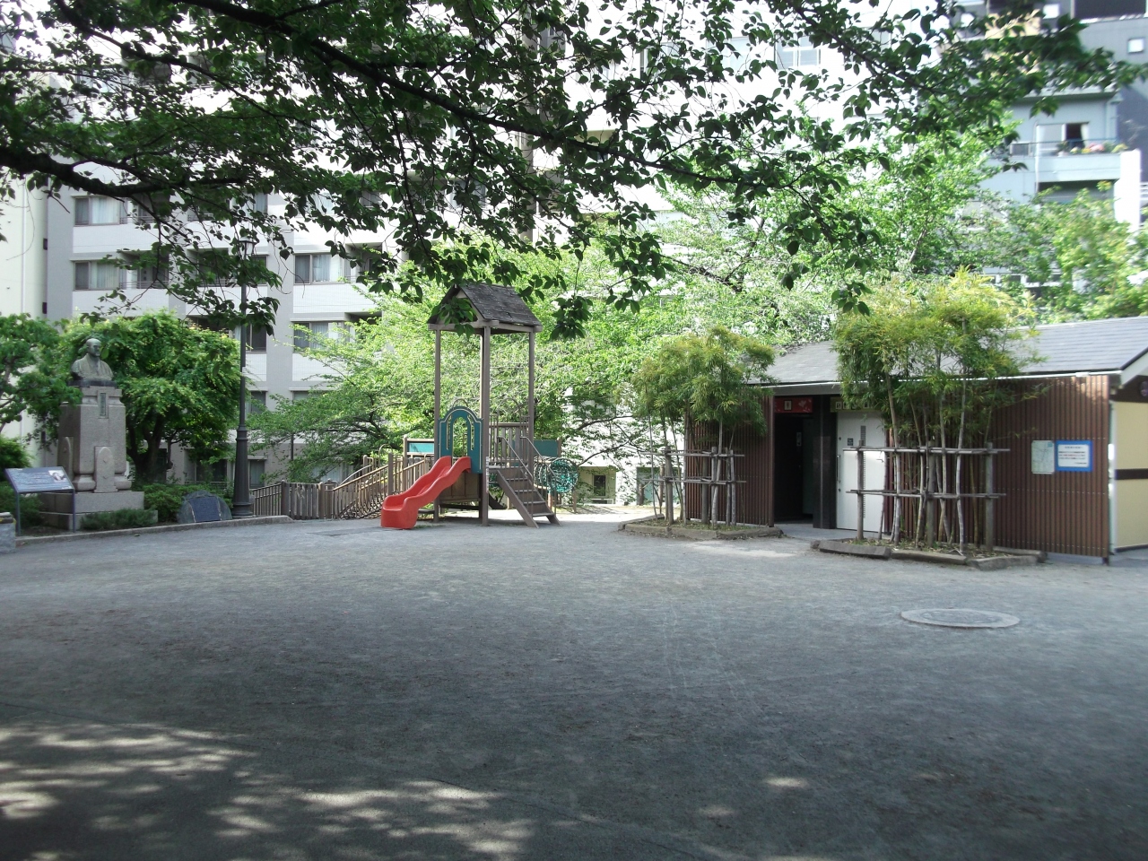 神田明神に隣接するようにしてある区立の小さな公園です。園内は神田の家があるほかは特にこれというものはありませんが、少しの幼児用遊具とトイレがあり、あとは砂地のスペースになっています。朝早い時間だったこともあり、ほとんど人影は見られませんでした。