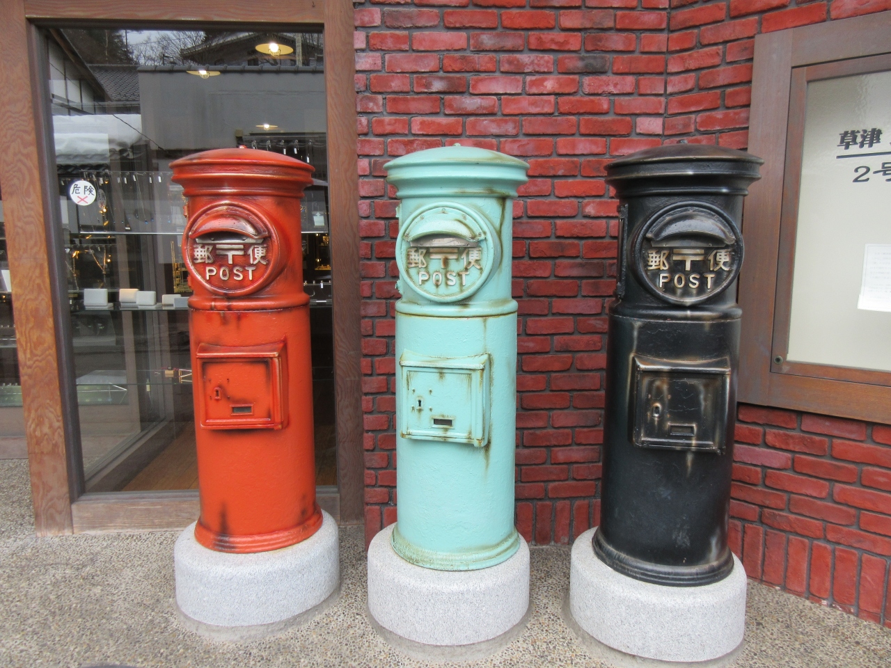 真ん中のエメラルドグリーンは、草津温泉の湯の色にちなんだものということですが、3台とも投函することは出来ません。