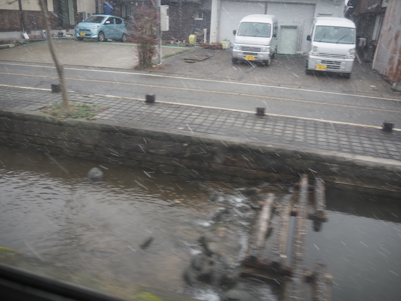 福井駅から一条谷へと路線バスで向かっていると、途中の越前東郷の街中で、道路の中央部に数百メートルは続く幅が1メートルほどの水路があります。水路は水の流れがあり、きれいな水が流れていて、川魚も住んでいるようです。この水路が堂田川です。きれいな水が流れているのは街の魅力のような気がします。