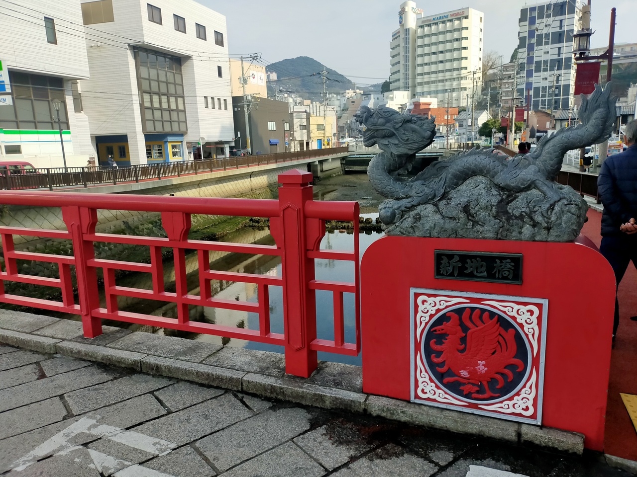 新地中華街の北門を渡るところにある橋です。川はコンクリート化されて趣はありませんが、橋の欄干には立派な龍がついていました。北側の中華門は立派です。新地中華街は北門から入って行くと、わかりやすかったです。