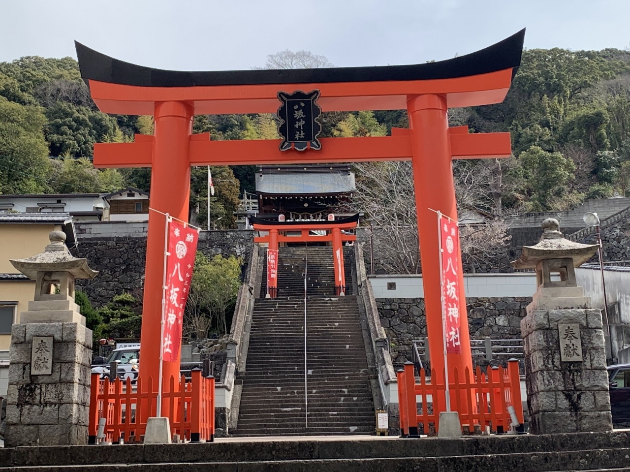 市内中心部から少し離れたところにありますが、歩いていけます。石段を登った小高い丘にある小さな神社。街を見下ろせる場所で、景色がいいです。石段が結構急なので足元に注意。近くにいくつか神社やお寺があります。古い街の風情を感じるスポット。