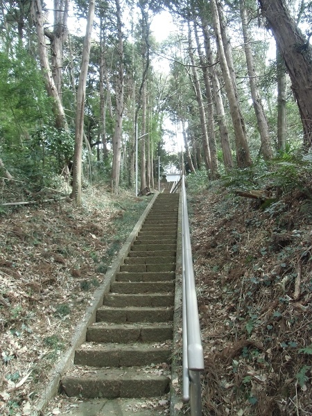 境内は雑木林の中にあって、結構な段数のある階段と、社殿のある広場のみで、手水舎や社務所などはありません。