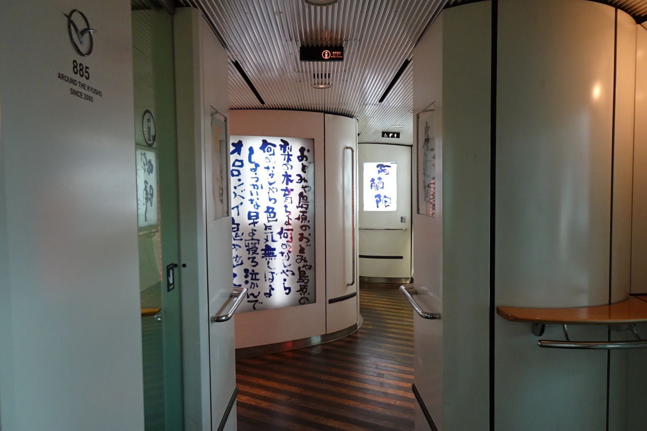 短時間なので、座らずに過ごしましたが、とてもおしゃれで、窓越しに外が見やすくなっていました。武雄温泉駅に着いたら、新幹線が同じホームで待っていて、乗り換えスムーズで名前の通りリレーしている姿を見ることができました。