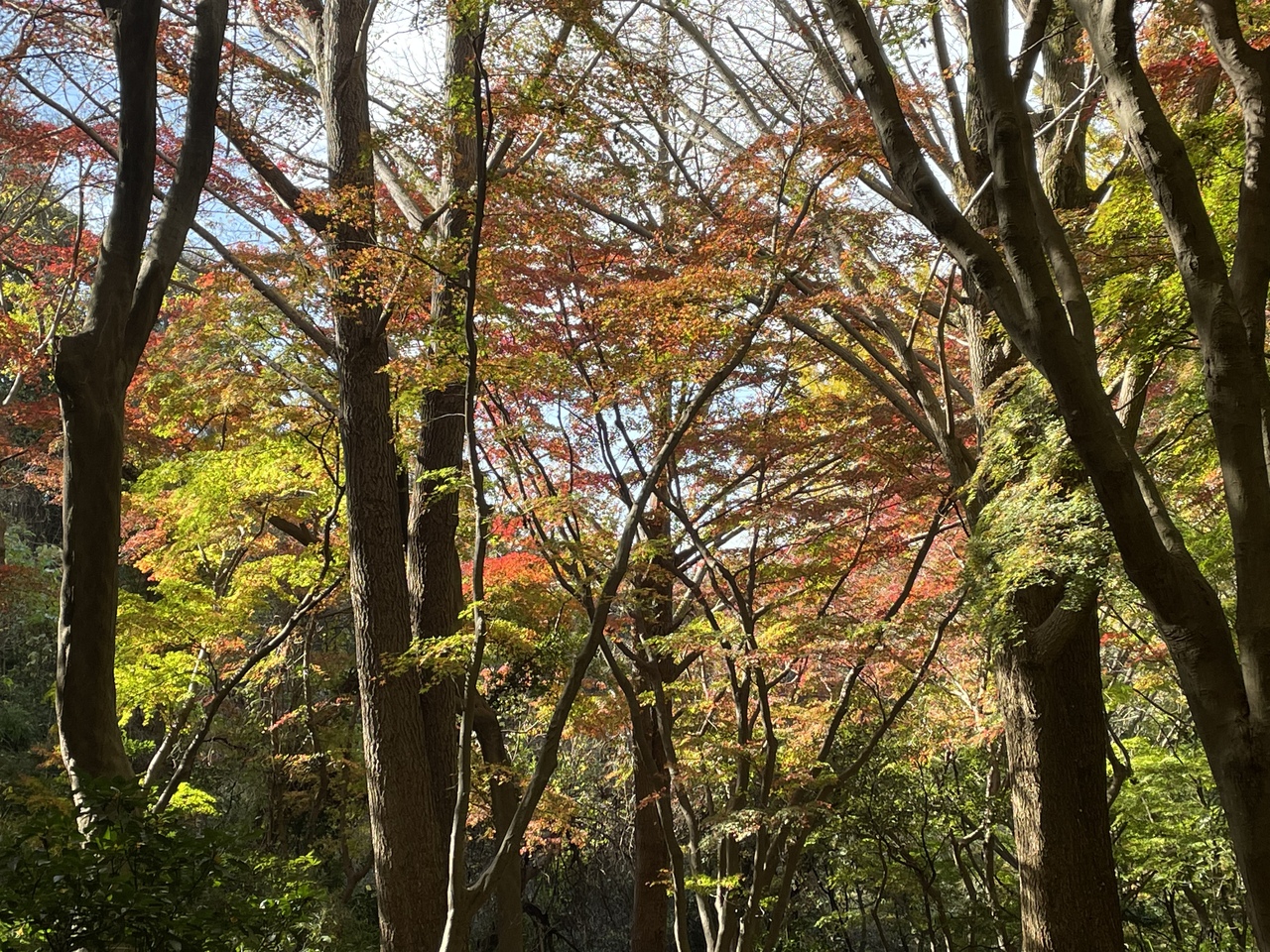 北鎌倉から鎌倉方面へ抜けるハイキングコースです。建長寺の奥の方または、明月院の横から入ることができ、途中のゴルフコースのところから鎌倉側に降りる獅子舞のところでは12月中旬頃まで紅葉が楽しめます。紅葉の他、銀杏もきれいでした。