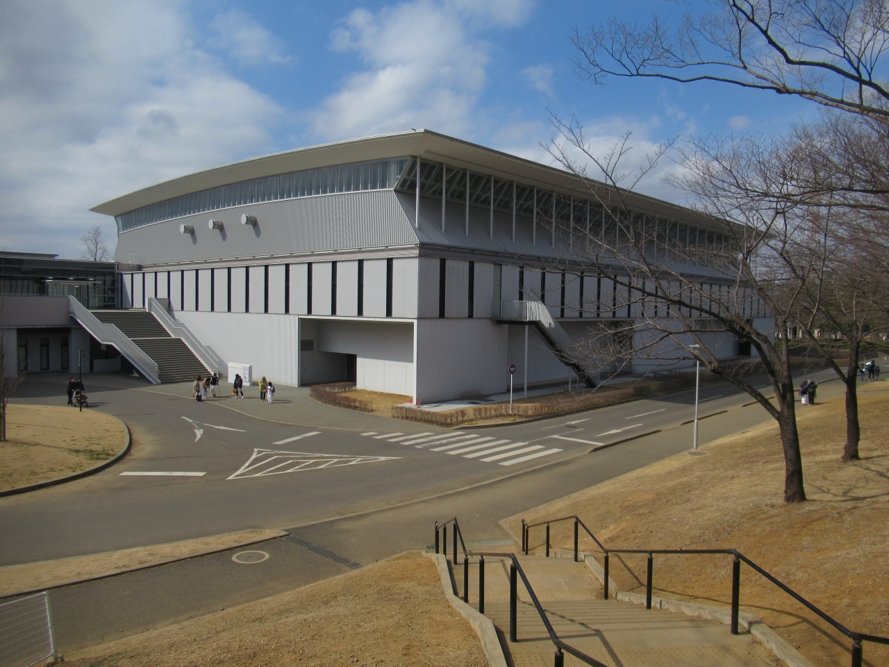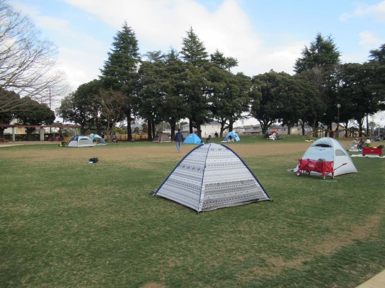流山セントラルパーク駅から北東へ18分ほど歩いたところにあります。駐車場は広く無料です。キッコーマンアリーナがあり、メインアリーナ・サブアリーナ・武道場・弓道場・トレーニング室などがあります。テニスコート、野球場、ピクニック広場、芝生広場、遊具広場などがある広い公園です。特徴はアスレチック遊具の多さです。丸太や木材を使ったアスレチック遊具があります。訪れた休日午後、寝そべって揺らすブランコは人気で、並んで待つ親子がいました。持参したワンタッチテントが芝生広場にいくつも置いてあり、人気の公園であることがわかりました。アスレチック遊具はどれも面白そうで遊んでいる子どもたちが笑っているのが印象的でした。