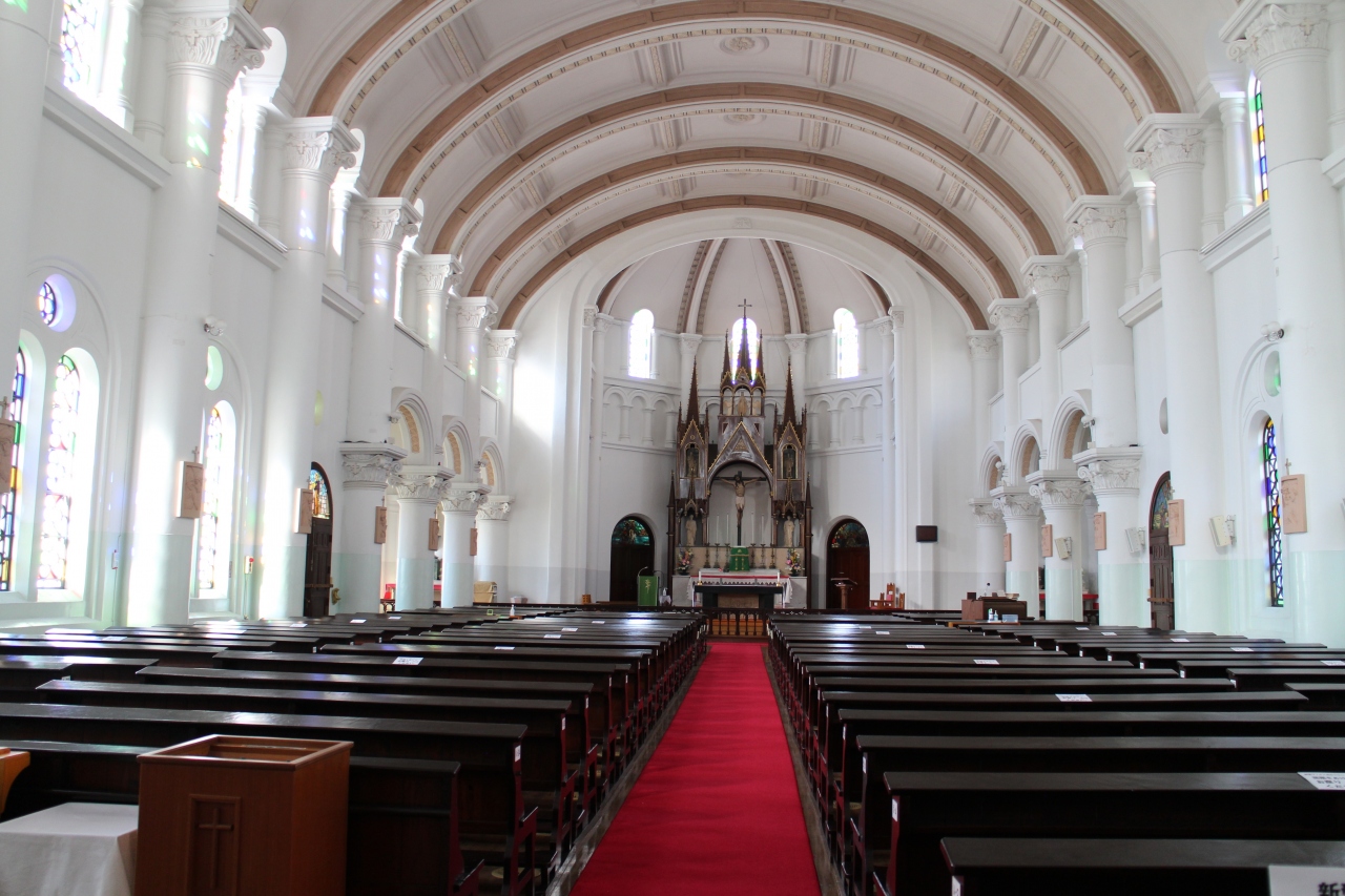 長崎に現存する数少ない被爆建造物のひとつであり、残った塔や外壁を利用して復元されたカトリック教会