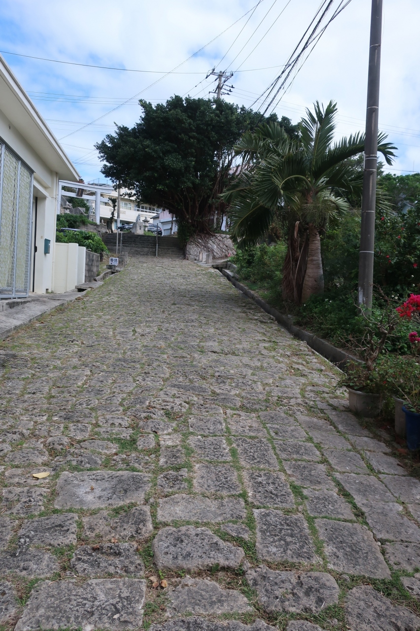 漲水御嶽から宮古神社に続く坂道です。古い石畳がそのまま残る貴重なばしょです。距離は短くてしかも急な坂道なので、観光地としてはちょっと地味ですが、この辺りに宮古島の史跡が集中する場所なので、散策しながら観光するのが楽しいと思います。