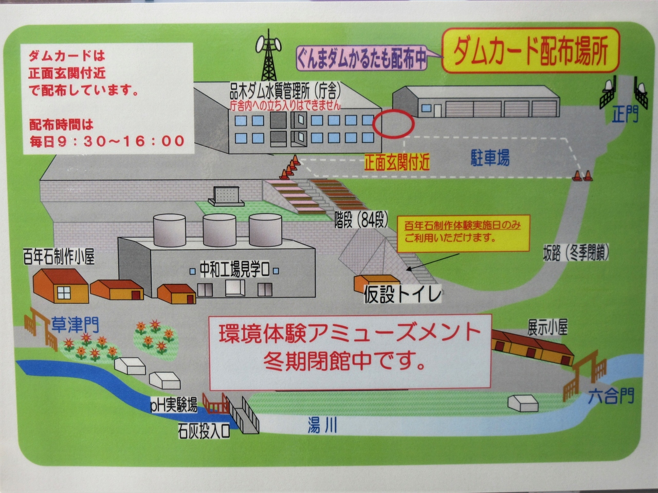 「品木ダムのダムカード」の他に、新たに出来た「草津中和工場カード」や「群馬ダムかるた」の「品木ダム」編もできていました。これらは初めて見ました。嬉しかったです。