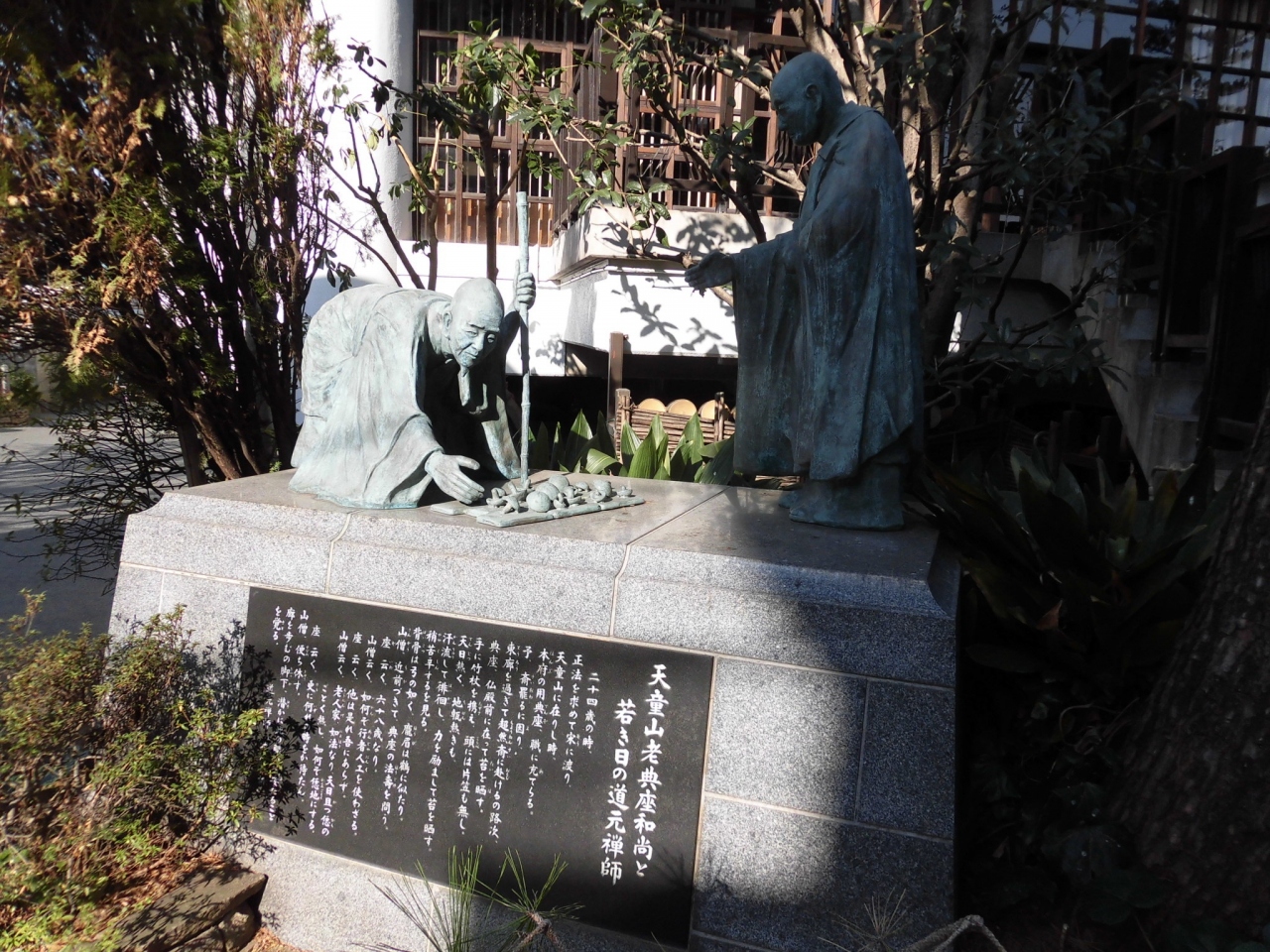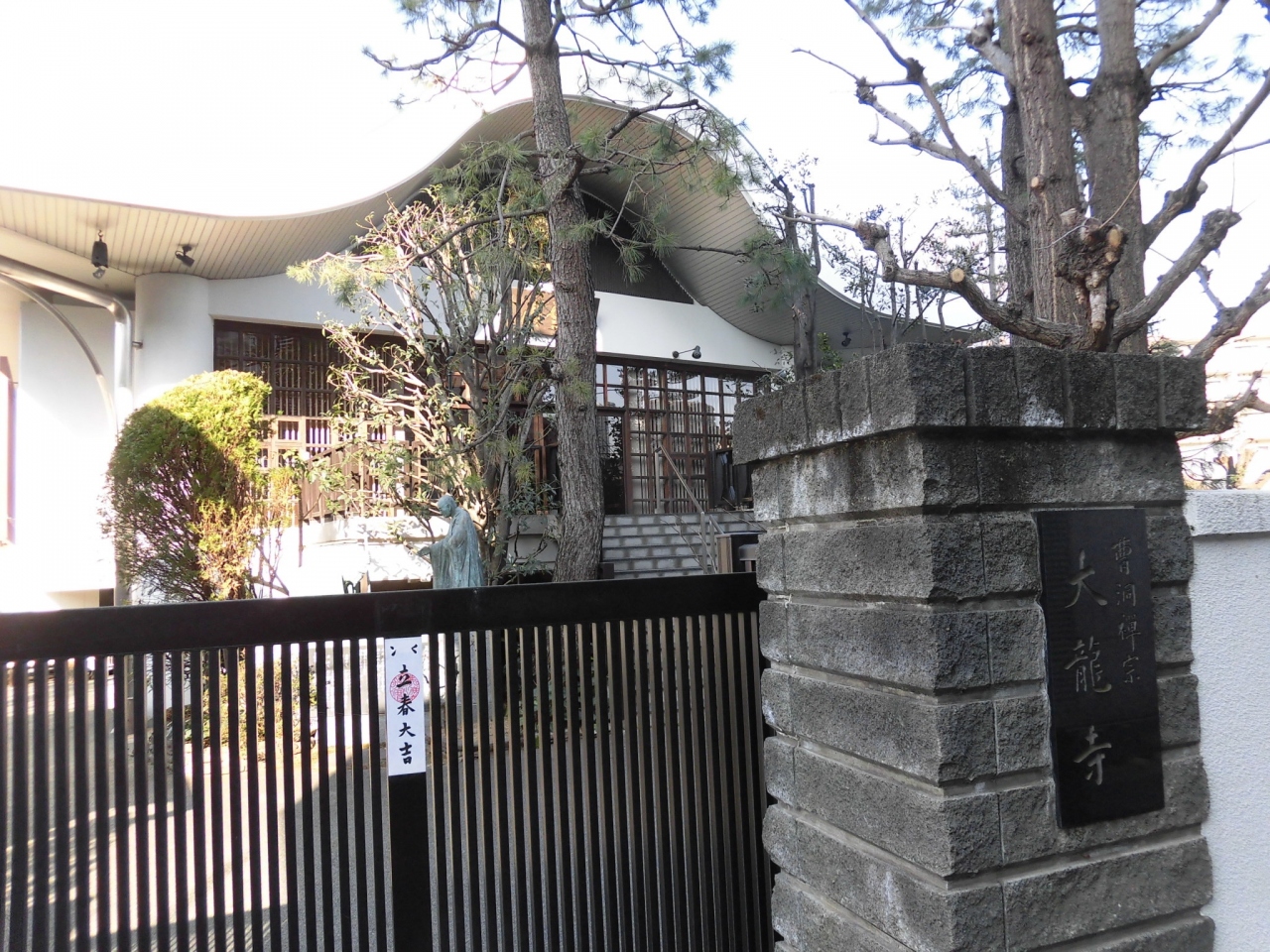 夏目坂通り周辺を散策途中で立ち寄った寺院です。本堂は今風ですが、屋根の形状がゆるやかなカーブになっていて、お寺のイメージを残していると思います。境内に道元禅師の像が立てられていて、何か問答のような文章が記されてます。素人にはわかりませんが、きっと仏教の尊い教えだろうと思いました。