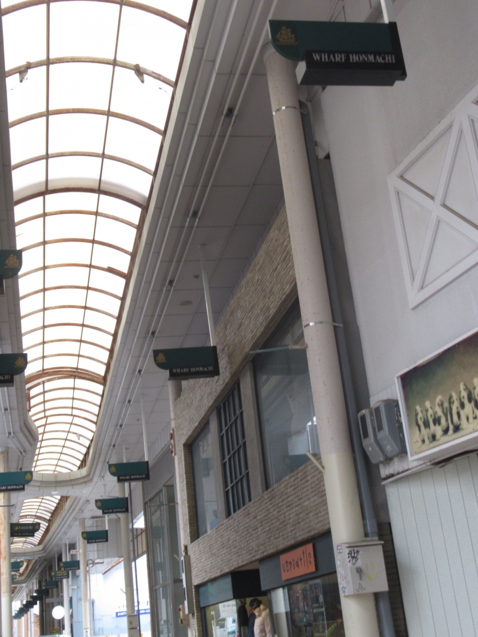 スーパーホテルの斜め前から別れて、駅前方面に向かって行く商店街です。