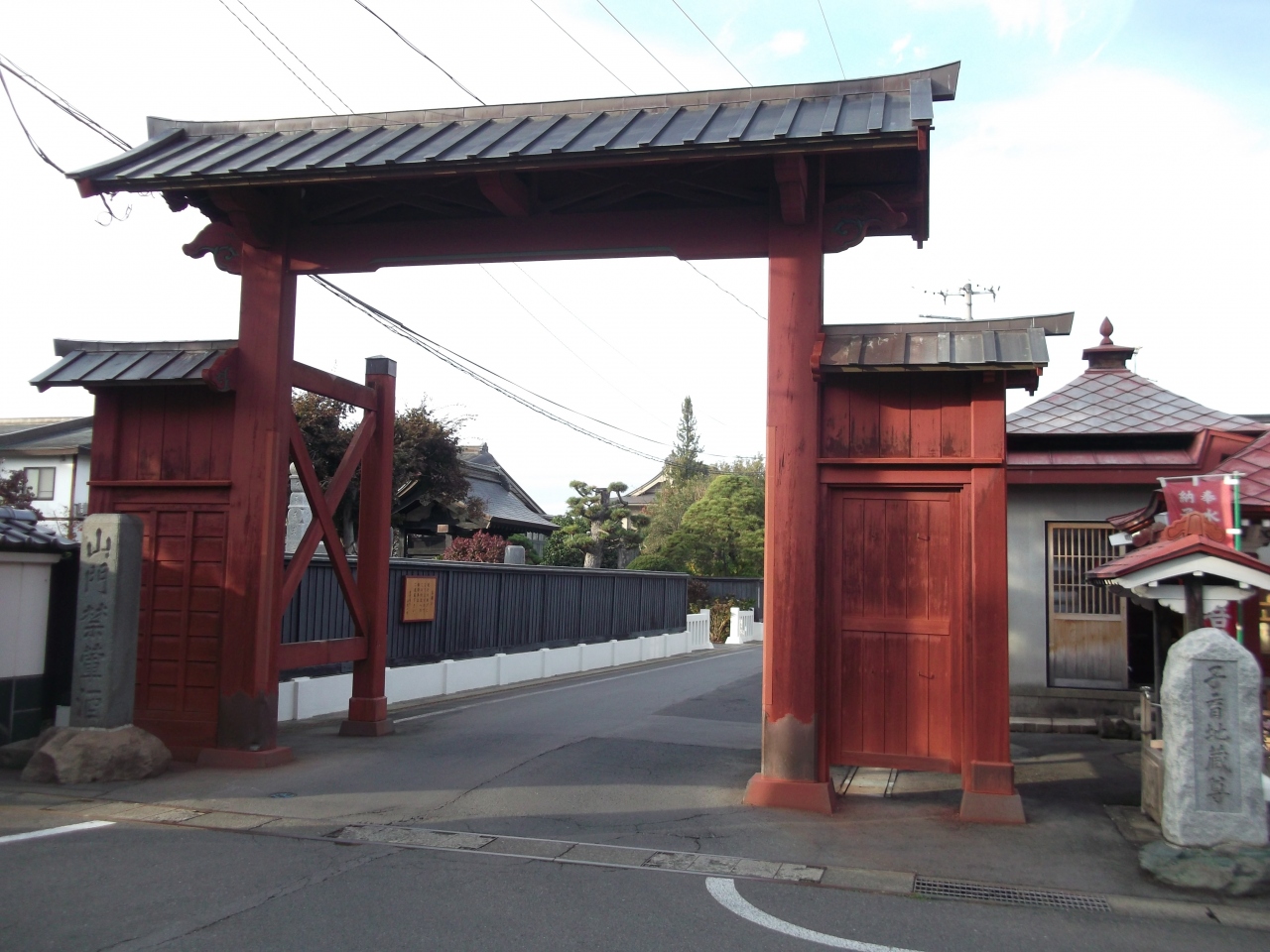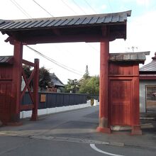弘前市の寺町である、禅寺が並ぶ禅林街の入口近くにこの門があります。メインの通りから横道に入るところに建っていて、朱塗りの門はとても目立って見えます。すぐ横には、色を合わせるかのように赤い屋根の子育て地蔵尊も立っていました。