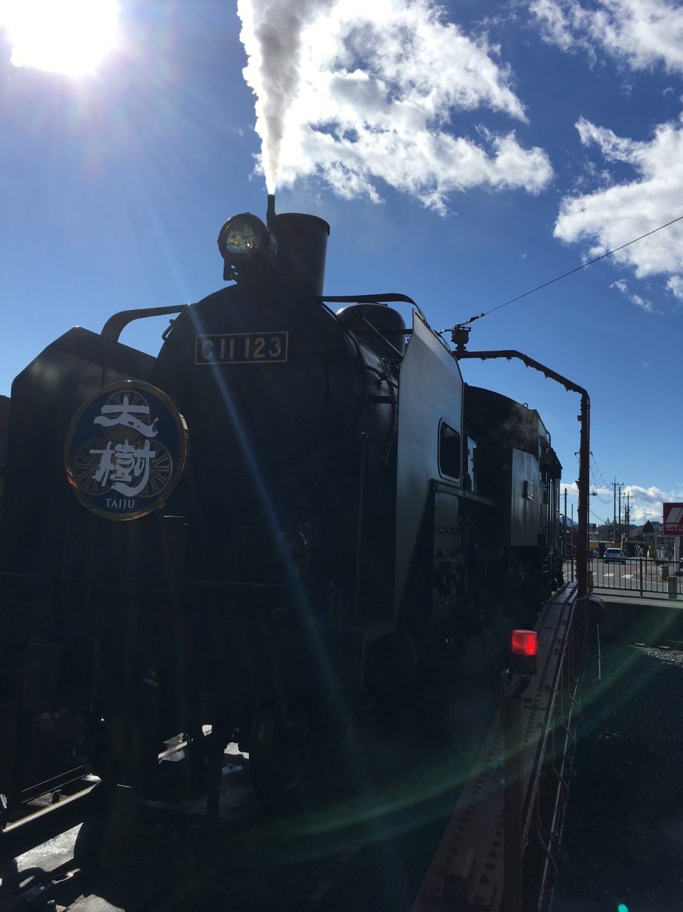 転車台がある駅だと、くるっと回ってくれます。車掌さんも手を振ってくれるので、みんな見ている人たちは沸き立っていました。鬼怒川温泉駅や下今市駅に立ち寄ってみると良いと思います。SL大樹の限定グッズも人気でした。