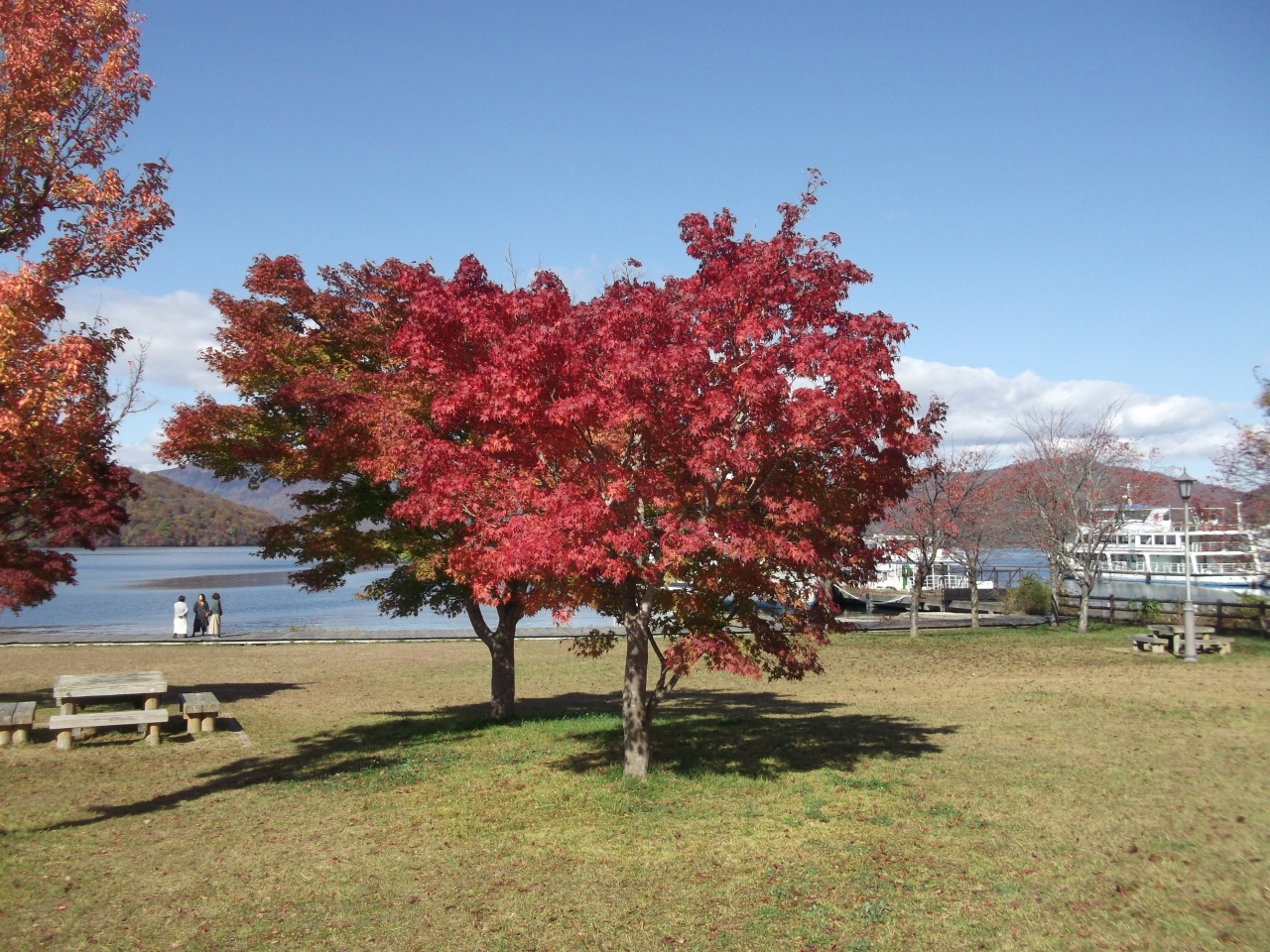 十和田湖はその中程あたりを南北に県境が通っています。湖の南側の青森県側には、湖に突き出た御倉半島、中山半島があり、独特の景観が広がっています。いくつか車を停められるところがありそれぞれ違った景観を眺められるほか、遊覧船の発着場もあるので湖上からの景観も楽しめます。