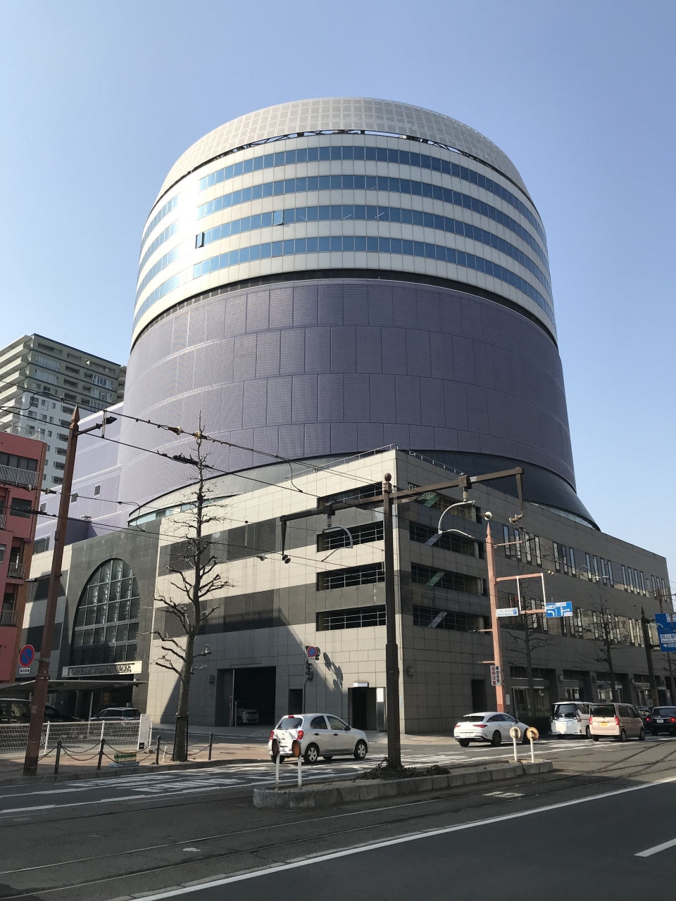 岡山シンフォニーホールは、1991年(平成3年)9月市街地再開発事業の一環として竣工されました。円筒形の独特のフォルムと藤色の一際目立つ外観ですが、ホール内は木の風合いを生かした温かみのある造りとなっています。ホール以外にも低層階にはいろいろなテナントがあり、今回は地下に入っている丸善を訪れました。