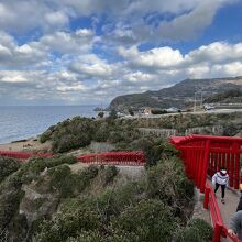 高台から海に向かって連なっている赤い鳥居が有名な元乃隅神社。