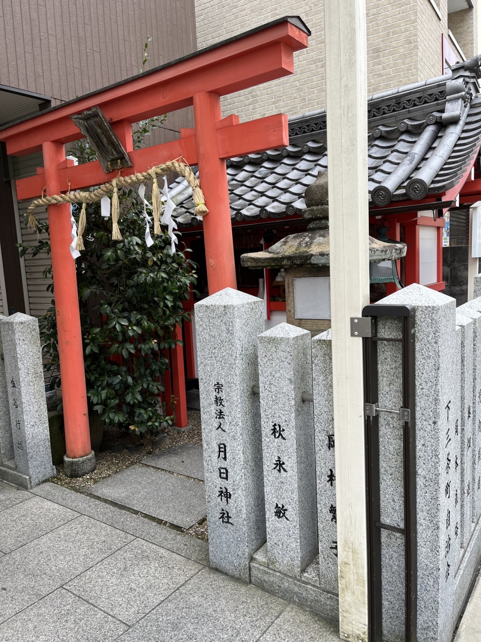 JR奈良駅から始まるショッピングストリートですが、お寺や神社などお参りする場所もあります。特に月日神社は、聖武天皇建立と伝えられる神社で、御祭神三座が祀られています。朱色が鮮やかな小さい神社で、通勤の時に、お参りが習慣化される雰囲気ですね。