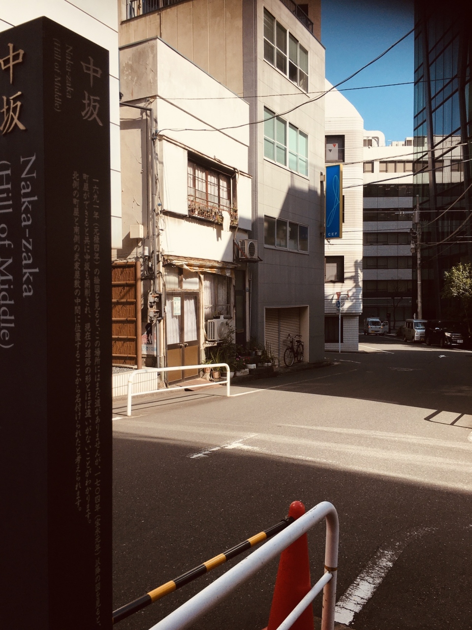 平河天満宮から徒歩1分もかからない場所にあるなだらかな坂道で途中、交差点になっていました。車の通りは少なく沿道には高いビルはなく静かな坂道でした。江戸時代、武家屋敷と町屋を結ぶ坂道だったのでこの名称ですが、今は武家屋敷跡も見当たらない場所でした。