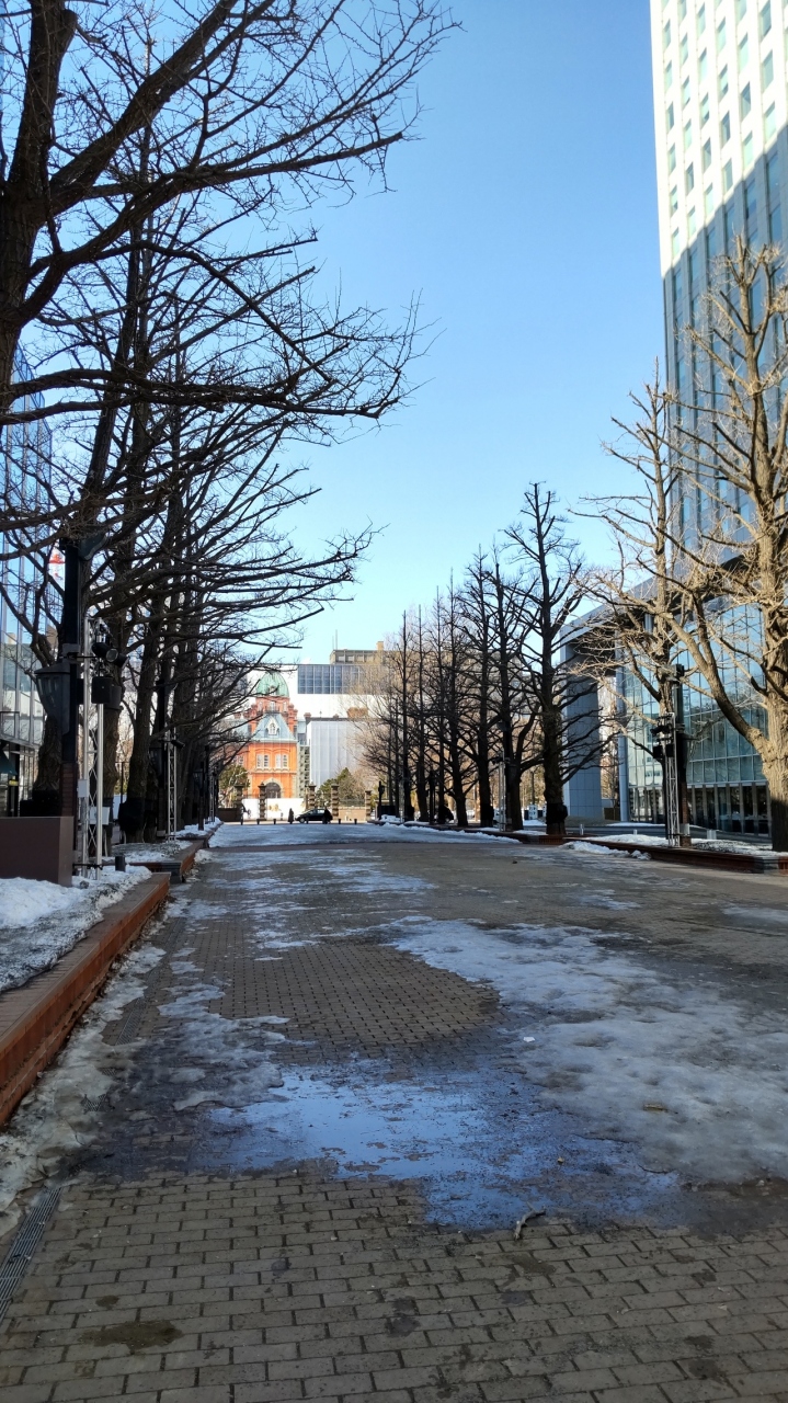 札幌駅前の三井赤レンガビル横のストリートですが歩行者専用道路になって北海道庁旧本庁舎前の通りまで繋がったちょっとした散歩道になっています。東方向から車で札幌駅前通りにぶつかると直進できずT字路になっています。イベントや地元テレビ局のロケが行われています